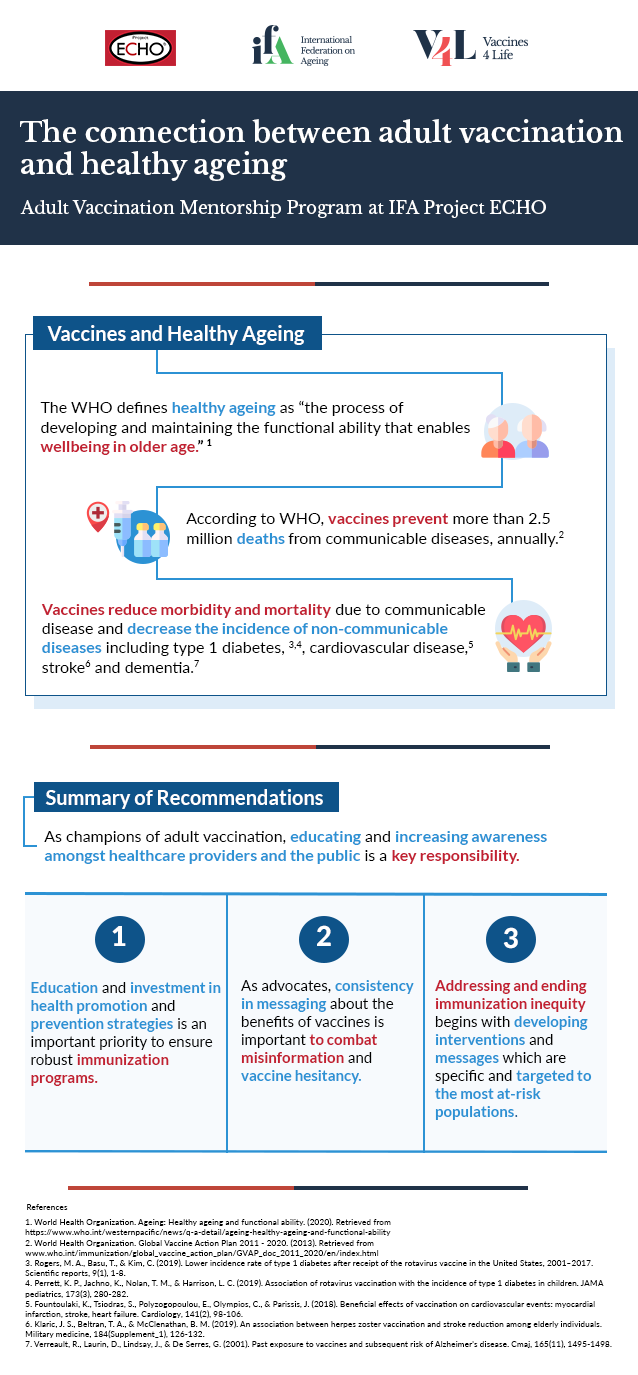 The Adult Vaccination Mentorship Program at IFA Project ECHO is a multi-session course to improve the skills of organizations to educate, promote and talk about adult immunization.